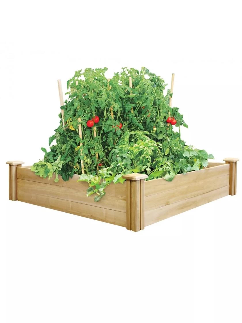 Cedar raised garden beds allow you to grow all of your favorite plants, including deep-root vegetables! If you want a big harvest or if you simply love gardening these gardens are perfect for you. You can mix and match your plants and grow the garden that you have always wanted. Assembly couldn’t be easier: just slide the dovetail boards into the corner posts and attach the decorative caps with a screwdriver. Once you are done assembling, you can add soil and any plants that you desire!